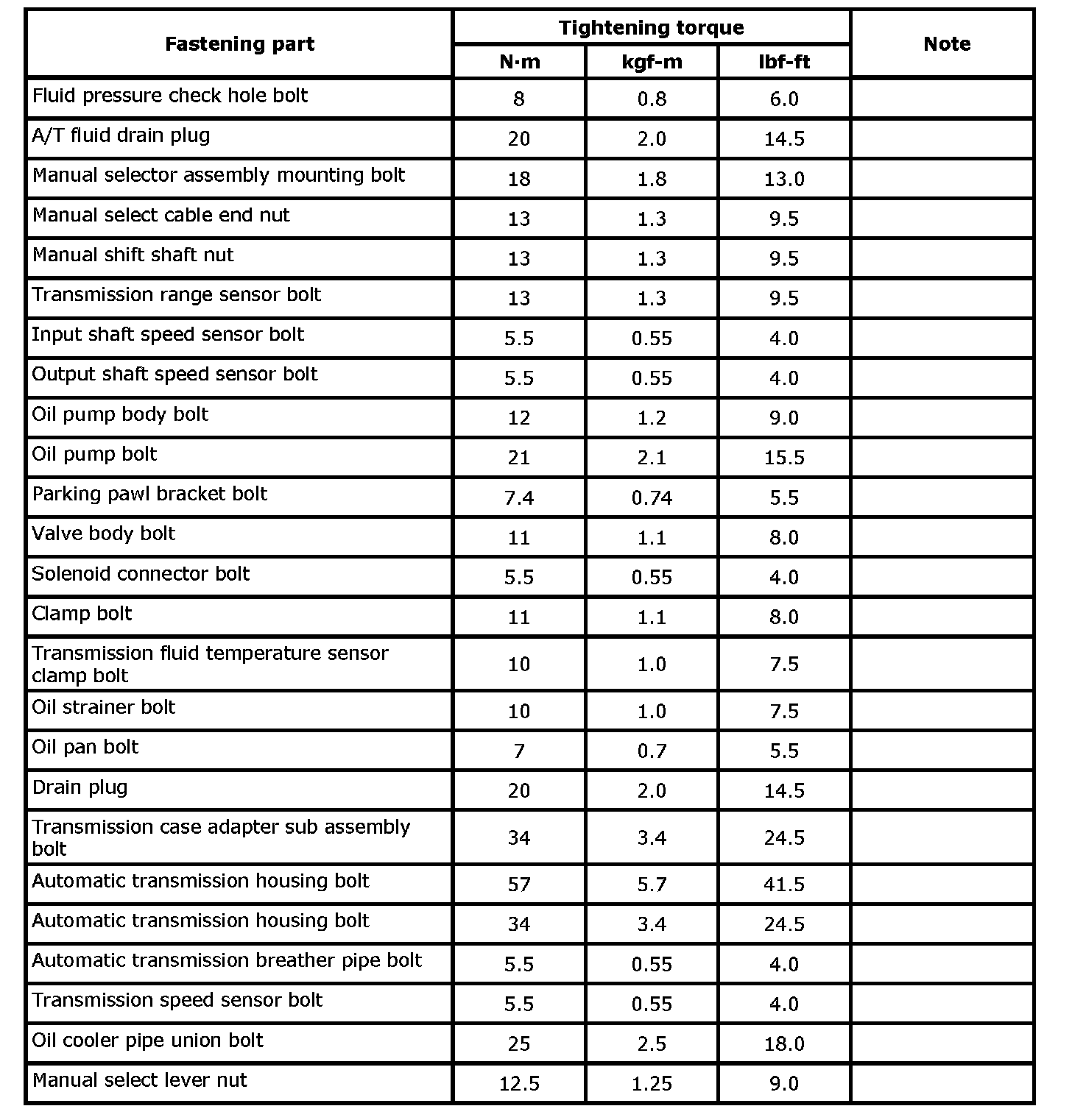 Drive plate bolts 30 Nm (3.0 kgf-m, 22.5 ft lb) plus 45°