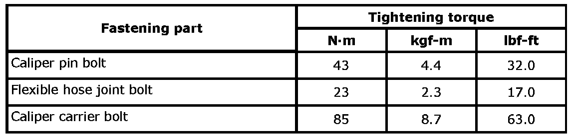For the tightening torque of fastener not specified in this section, refer to Fastener Information.