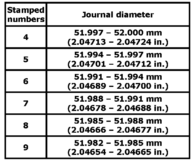 Stamped number 2 53.0061 - 53.0120 mm (2.08686 - 2.08708 in.)