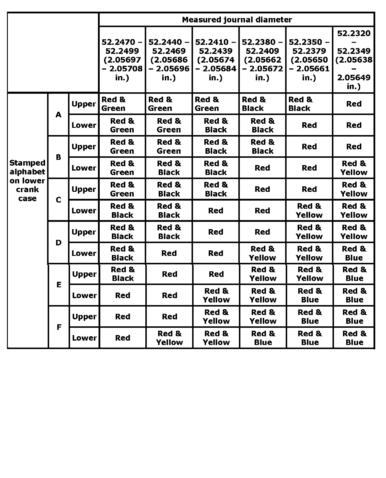 Oversize (0.125 mm, 0.00492 in.): 2.533 - 2.583 mm (0.0998 - 0.1016 in.)