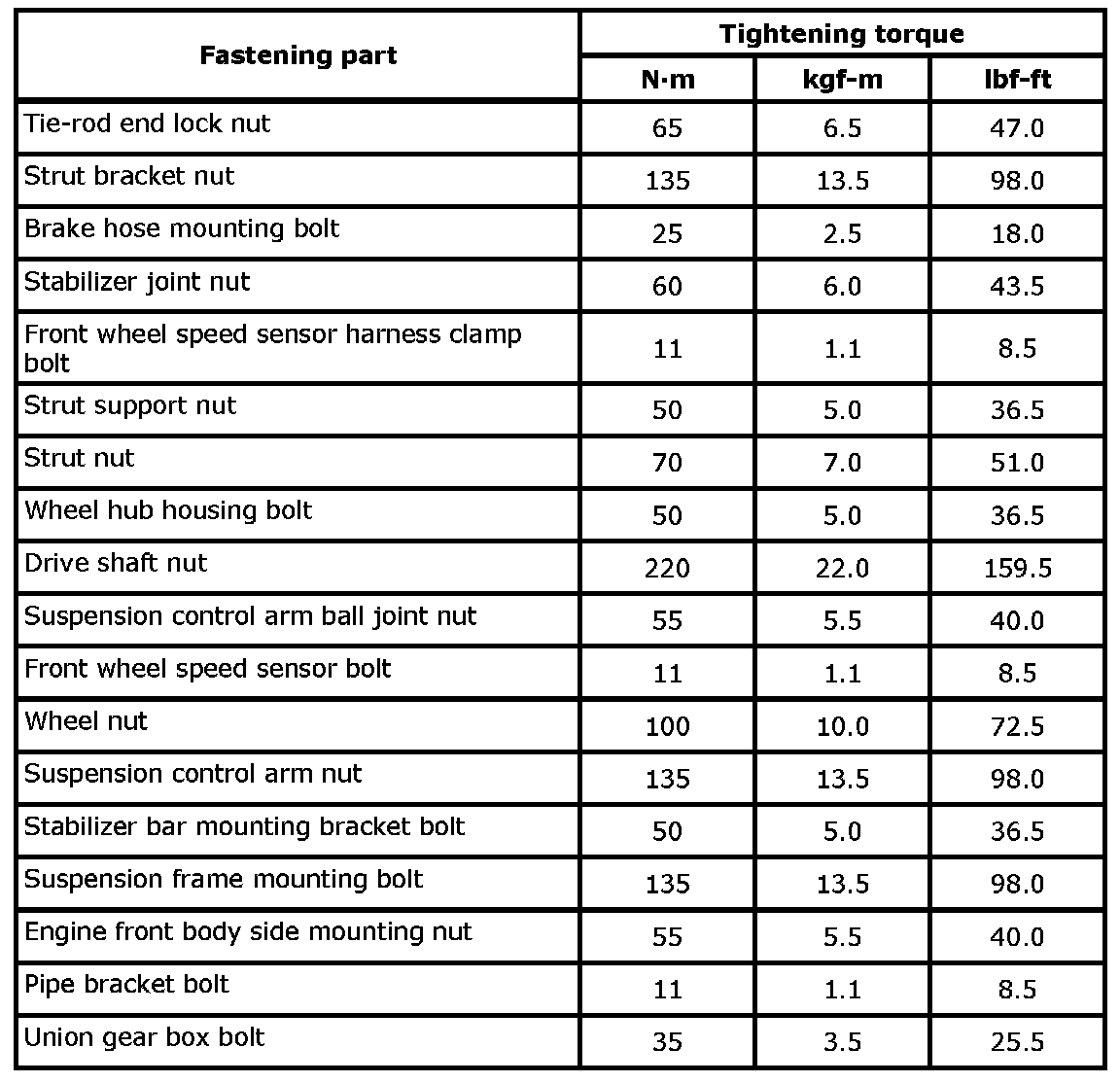 The specified tightening torque is also described in the following. Front Suspension Construction