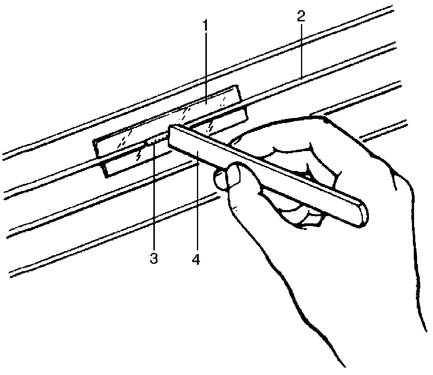3. Apply commercially-available repair agent (3) with a fine-tip brush (4).