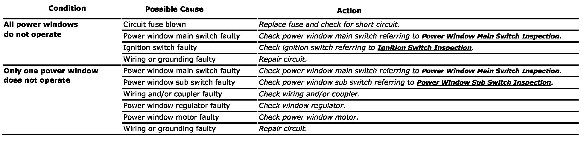 Power Window Control System Symptom Diagnosis