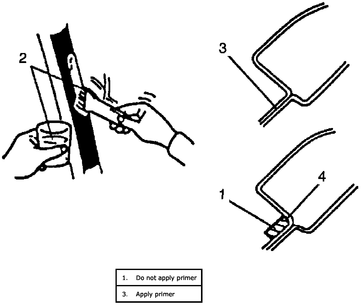 4. Using new brush, apply sufficient amount of primer onto glass along glass edge.