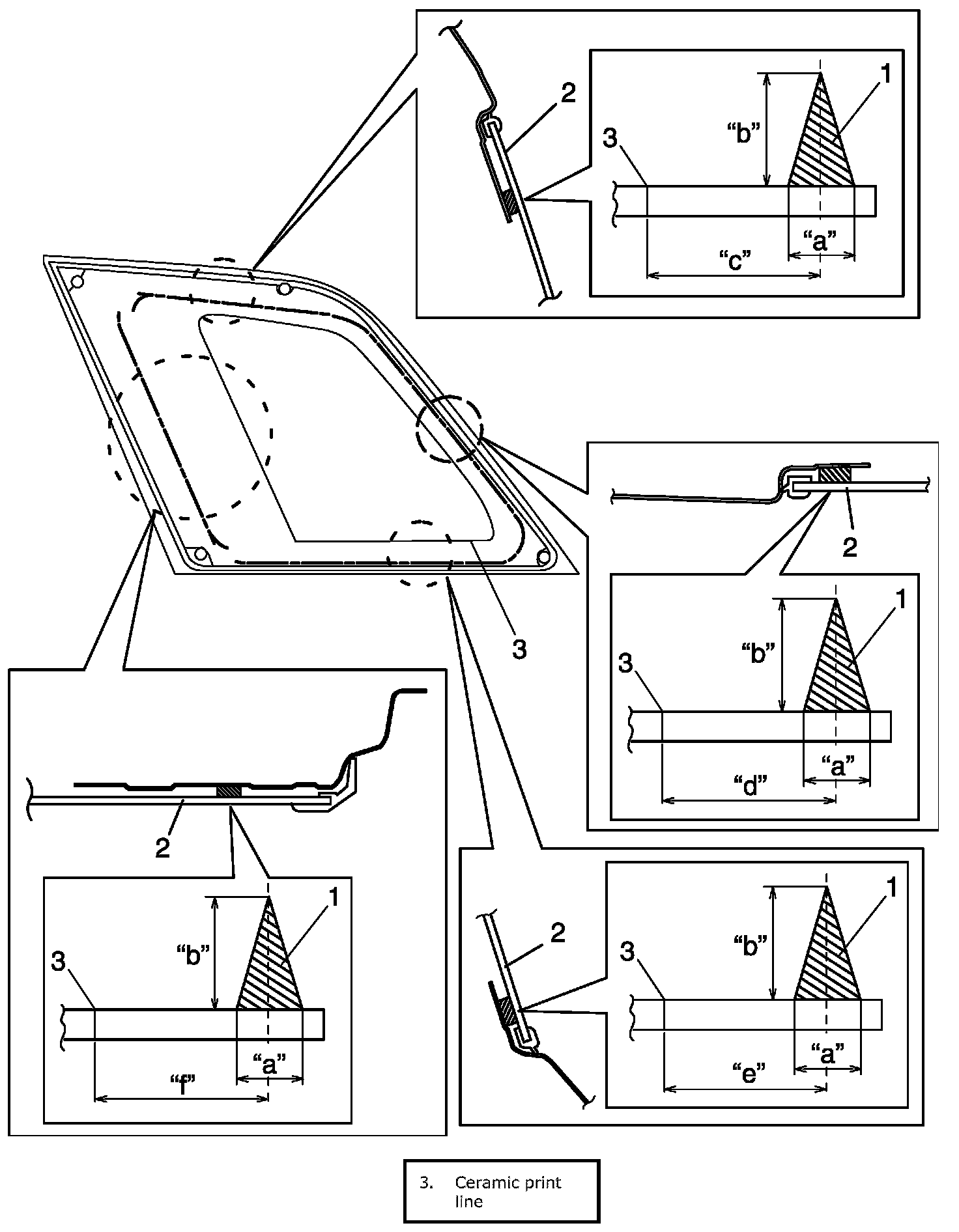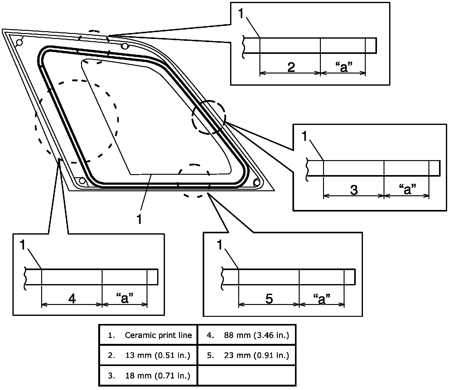 Adhesive amount specifications and position for rear quarter window