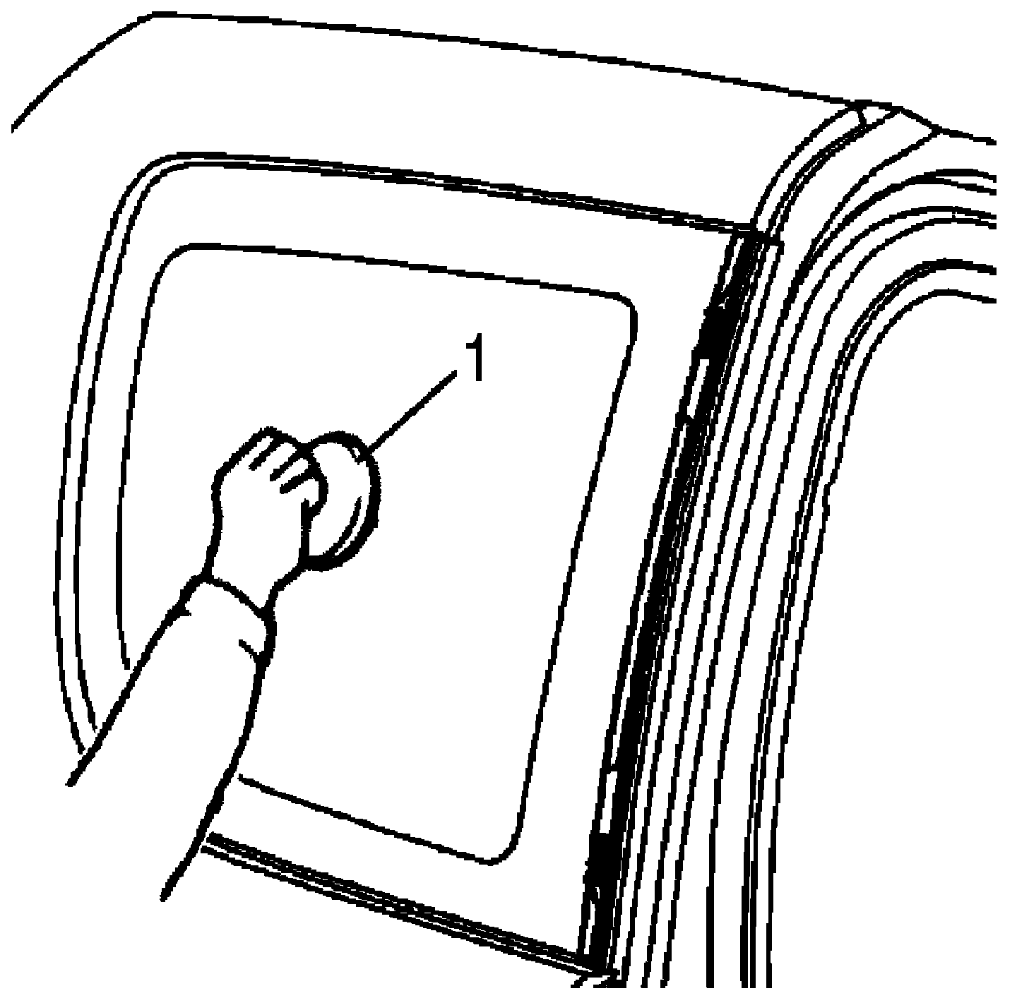 - Press glass (2) against fittings surface of body panel quickly after adhesive (1) is applied.