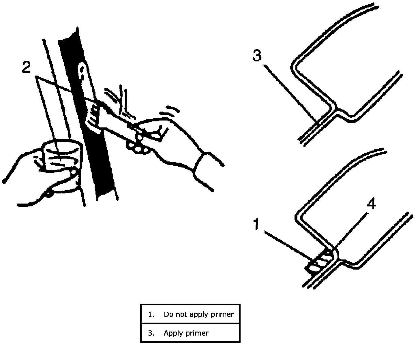 7. Using new brush, apply sufficient amount of primer onto glass along glass edge.
