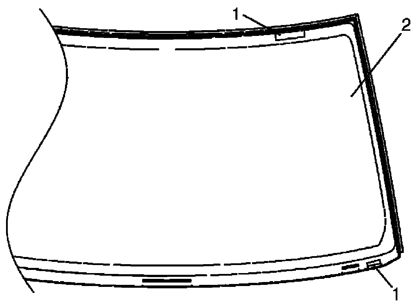 12. When reusing windshield, remove the adhesive (1) from it, using care not to damage primer coated surface (2).