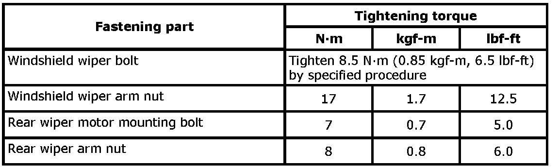 NOTE: The specified tightening torque is also described in the following. Wipers and Washers Components