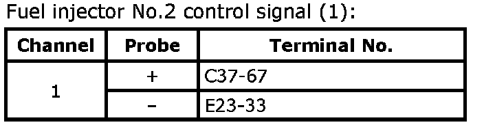 Fuel injector No.2 control signal, ignition coil No.2 control signal, CMP sensor (bank 1 / intake side) signal and CKP sensor signal