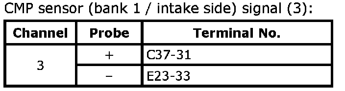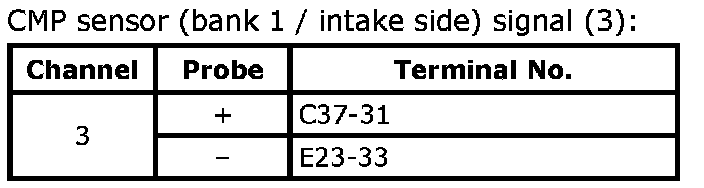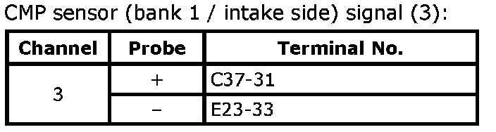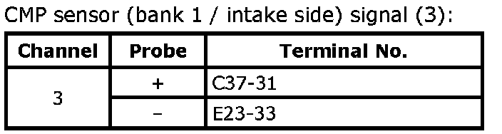 Fuel injector No.3 control signal, ignition coil No.3 control signal, CMP sensor (bank 1 / intake side) signal and CKP sensor signal