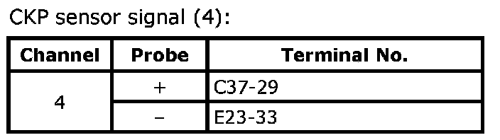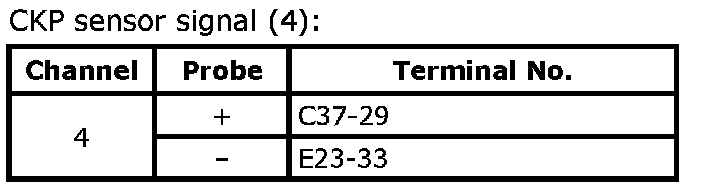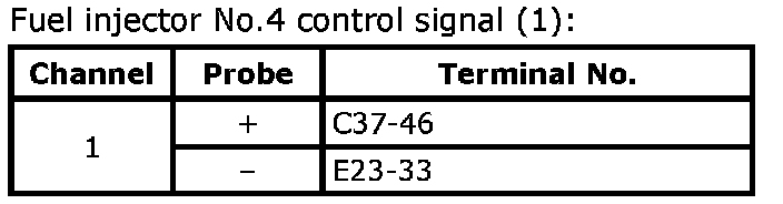 Fuel injector No.4 control signal, ignition coil No.4 control signal, CMP sensor (bank 1 / intake side) signal and CKP sensor signal