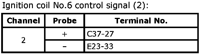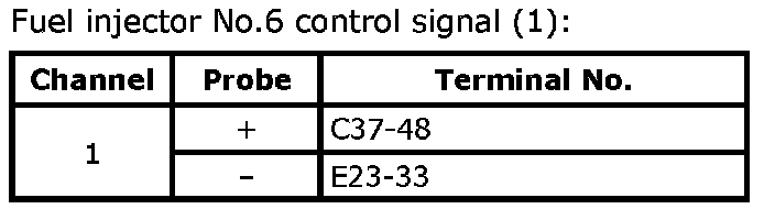 Fuel injector No.6 control signal, ignition coil No.6 control signal, CMP sensor (bank 1 / intake side) signal and CKP sensor signal