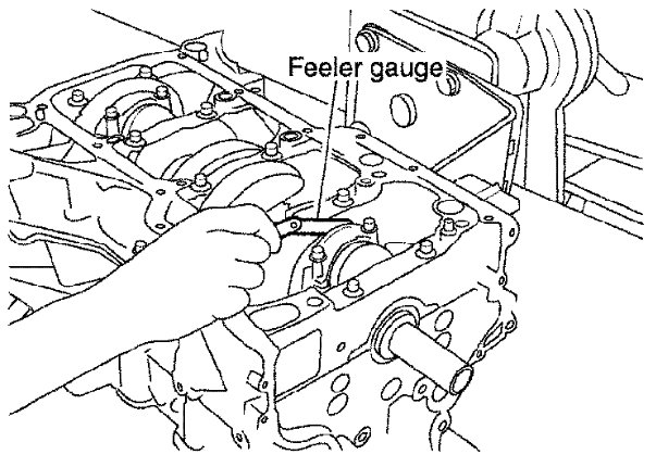 - Measure the side clearance between connecting rod and crankshaft arm with a feeler gauge.