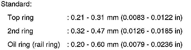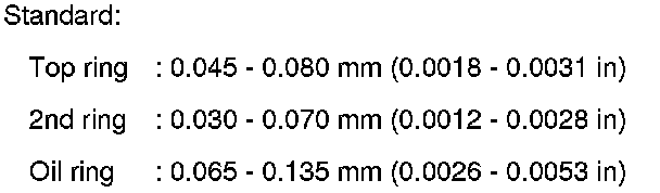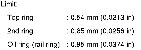 - If the measured value exceeds the limit, replace piston ring, and measure again. If it still exceeds the limit, replace piston also.
