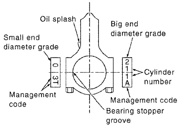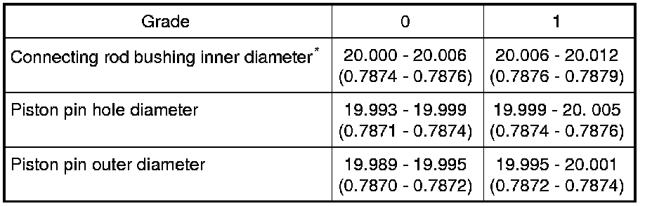 - Piston pin (piston pin hole) grade is provided only for the parts installed at the plant. For service parts, no grades can be selected. (Only grade "0" is available.)