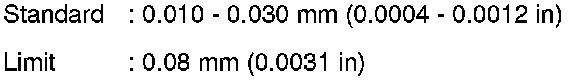 - If the measured value exceeds the limit, replace thrust bearings, and measure again. If it still exceeds the limit, replace crankshaft also.