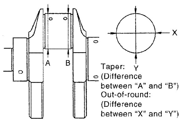 - Out-of-round is indicated by the difference in dimensions between (X) and (Y) at (A) and (B).