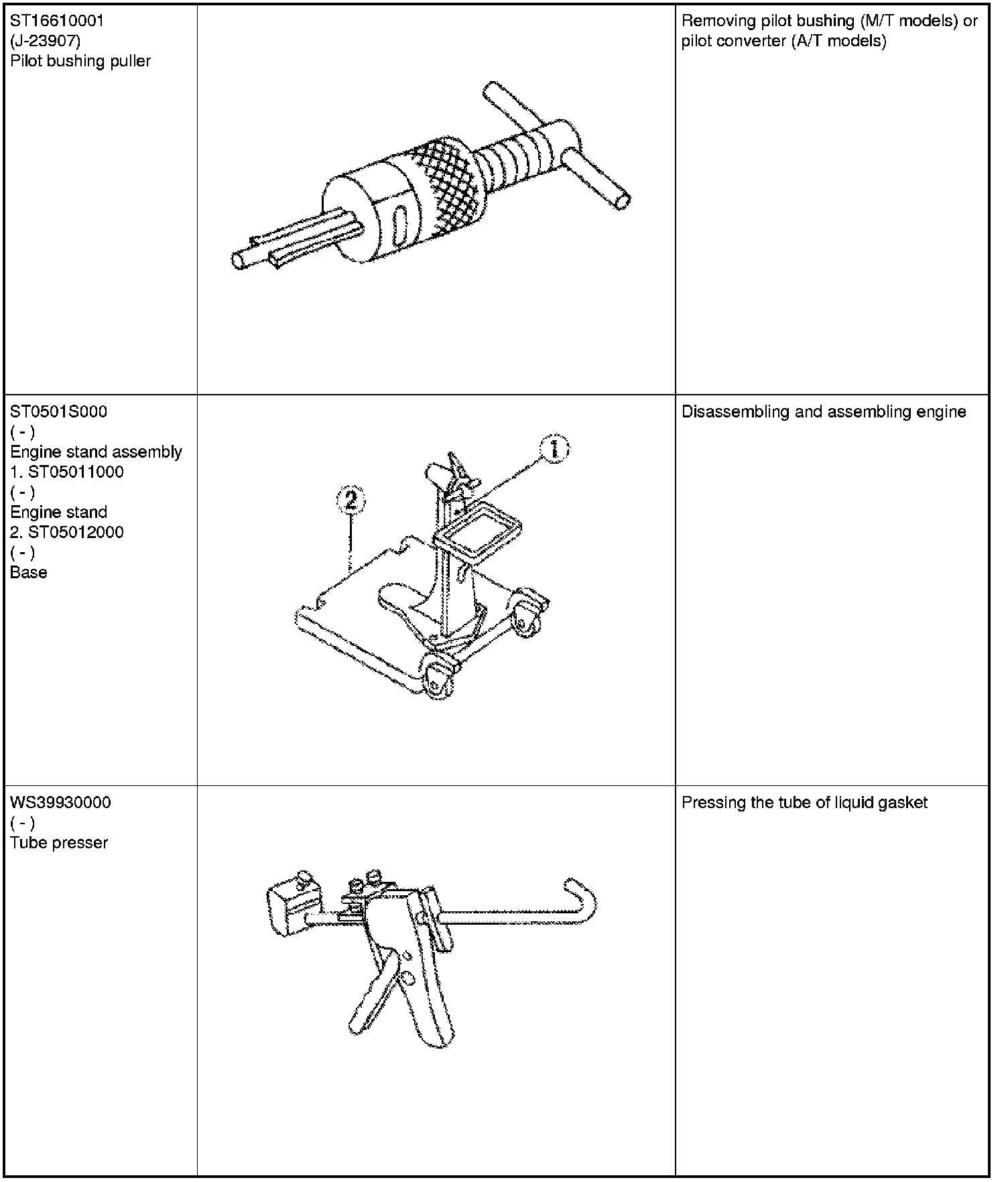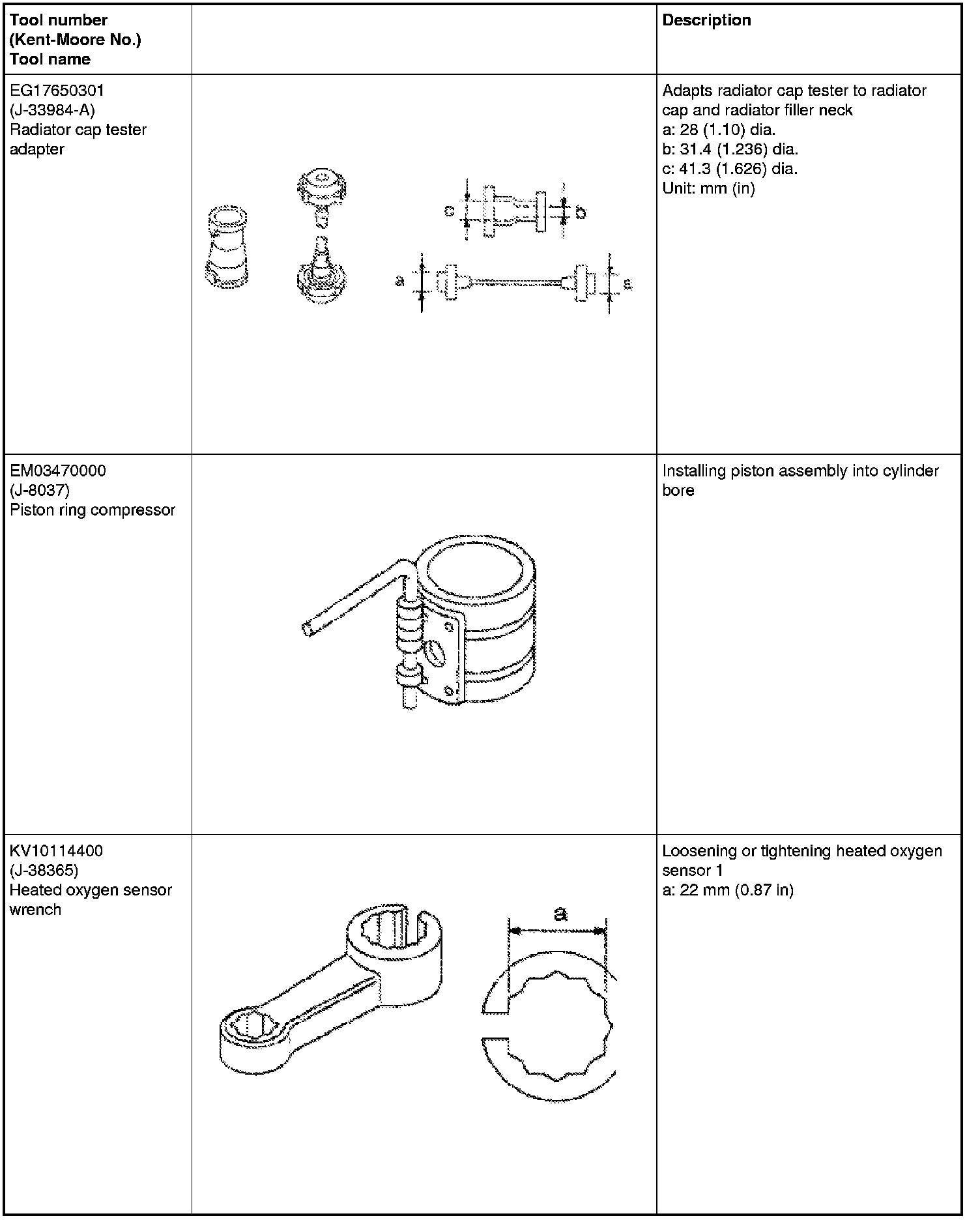 The actual shapes of Kent-Moore tools may differ from those of special service tools illustrated here.