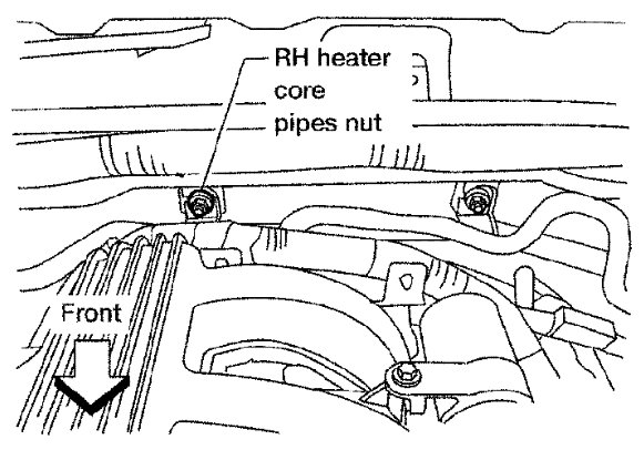 5) For vehicles equipped with the VQ40DE engine, remove the RH heater core pipes nut.