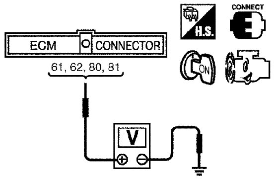 2 Read the voltage signal between ECM terminals 61, 62, 80, 81 and ground with an oscilloscope.