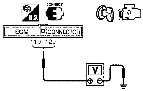 2 Check voltage between ECM terminals 119, 120 and ground with SDT or tester.