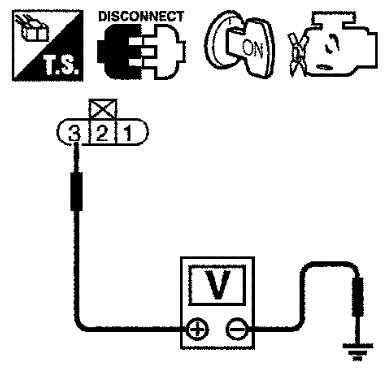 5 Check voltage between ignition coil terminal 3 and ground with SDT or tester.
