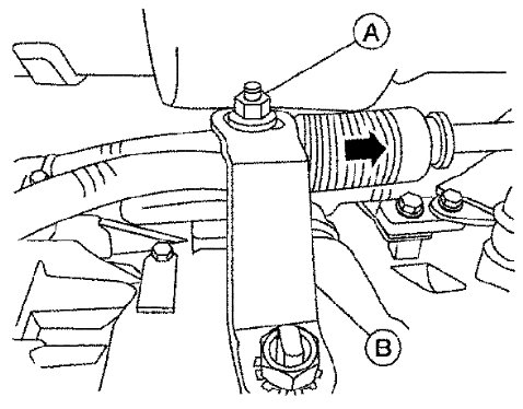 2) Place the manual lever (B) and shift selector in "P" position.