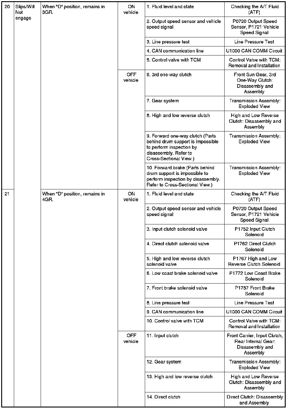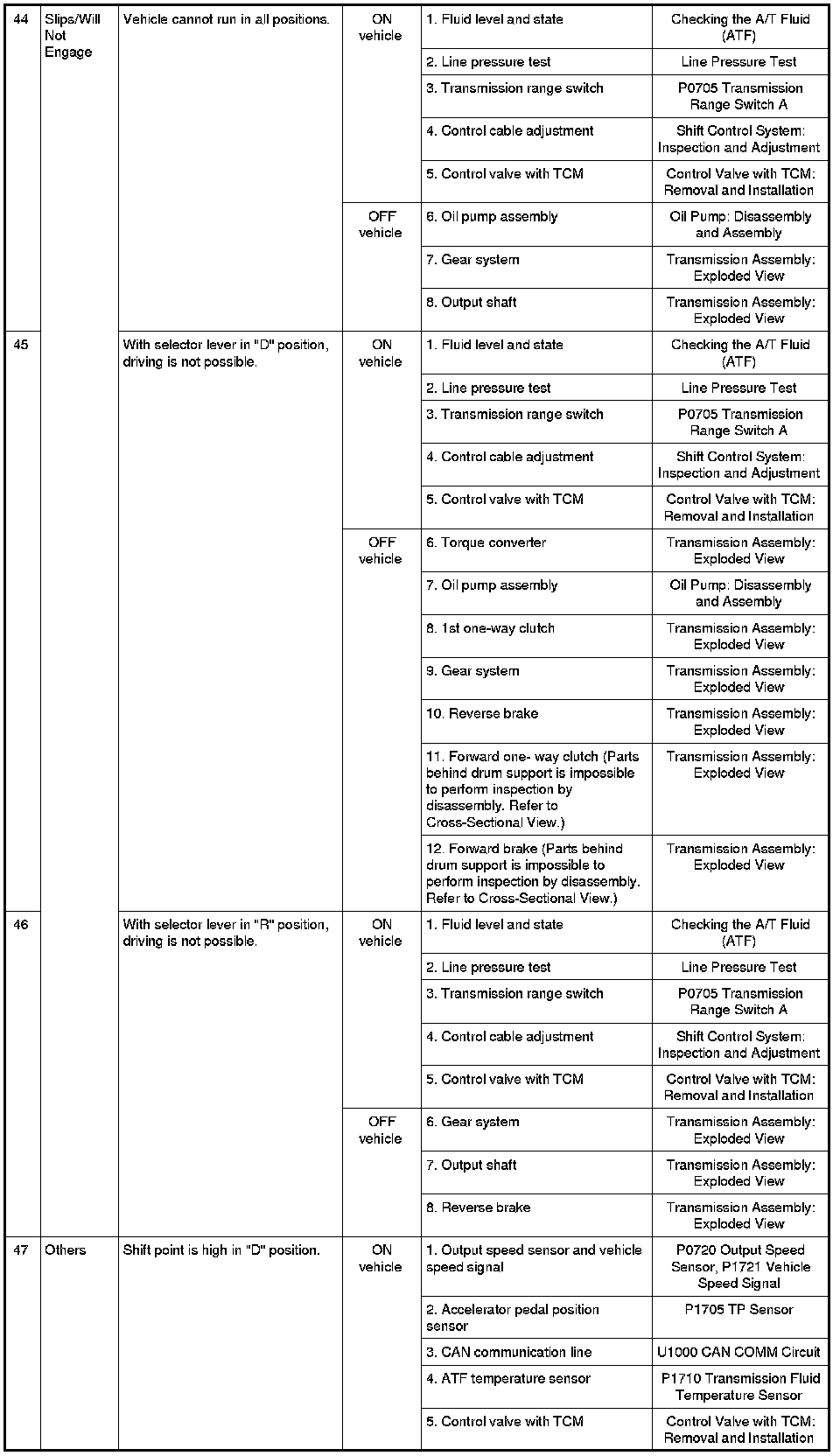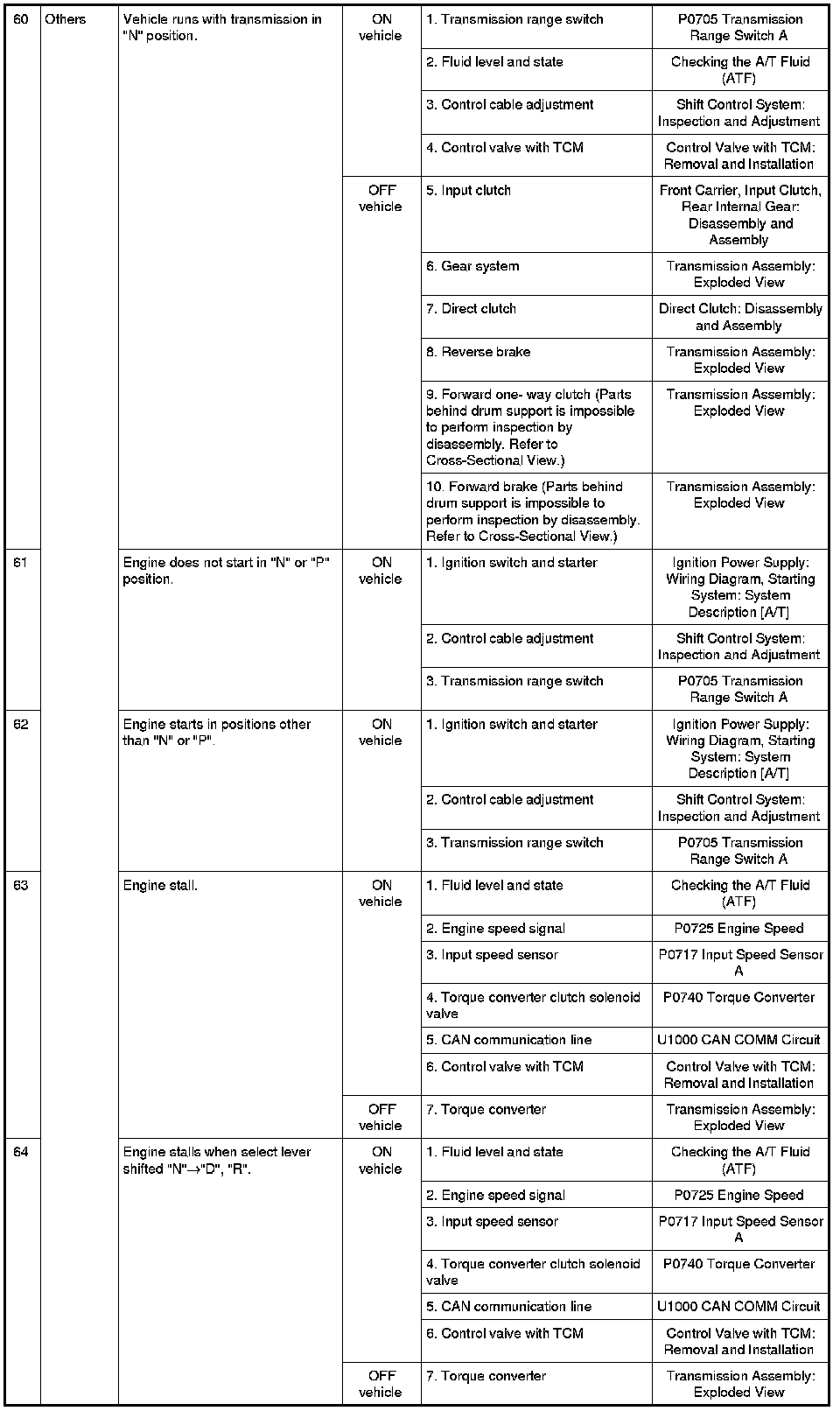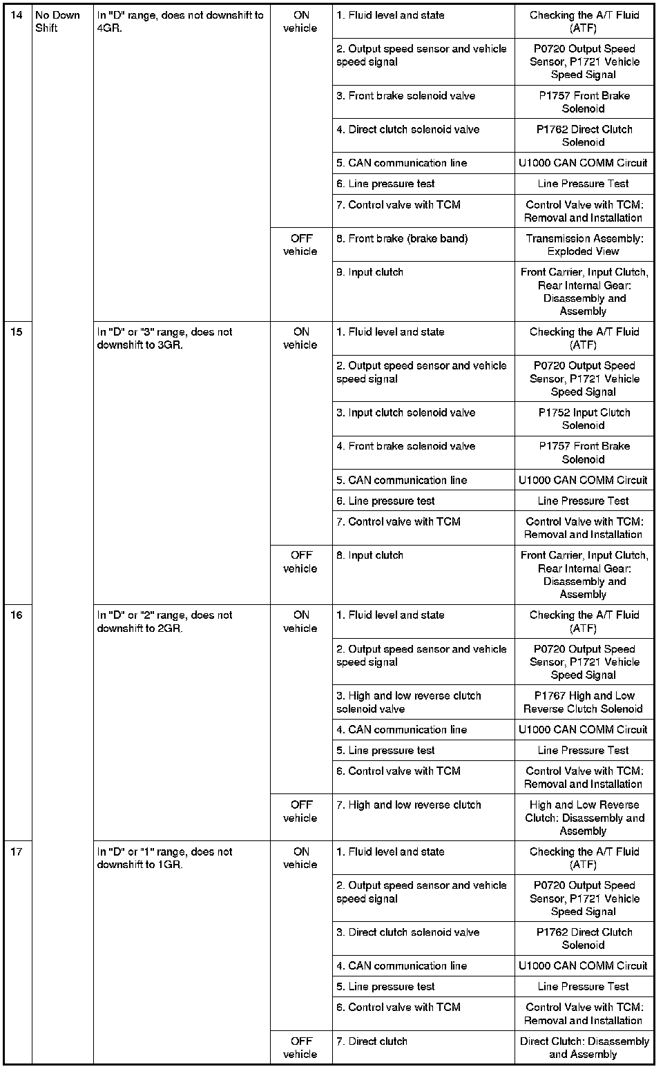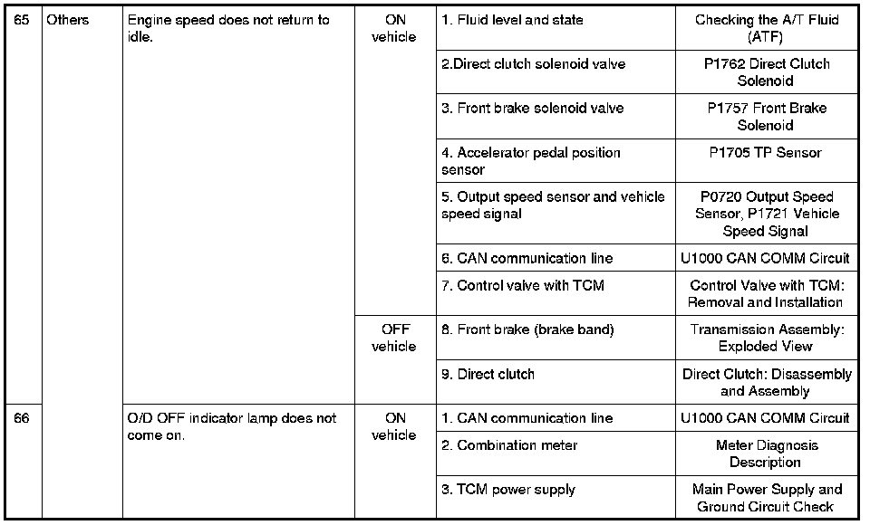 - Overhaul and inspect inside the A/T only if A/T fluid condition is NG. Refer to