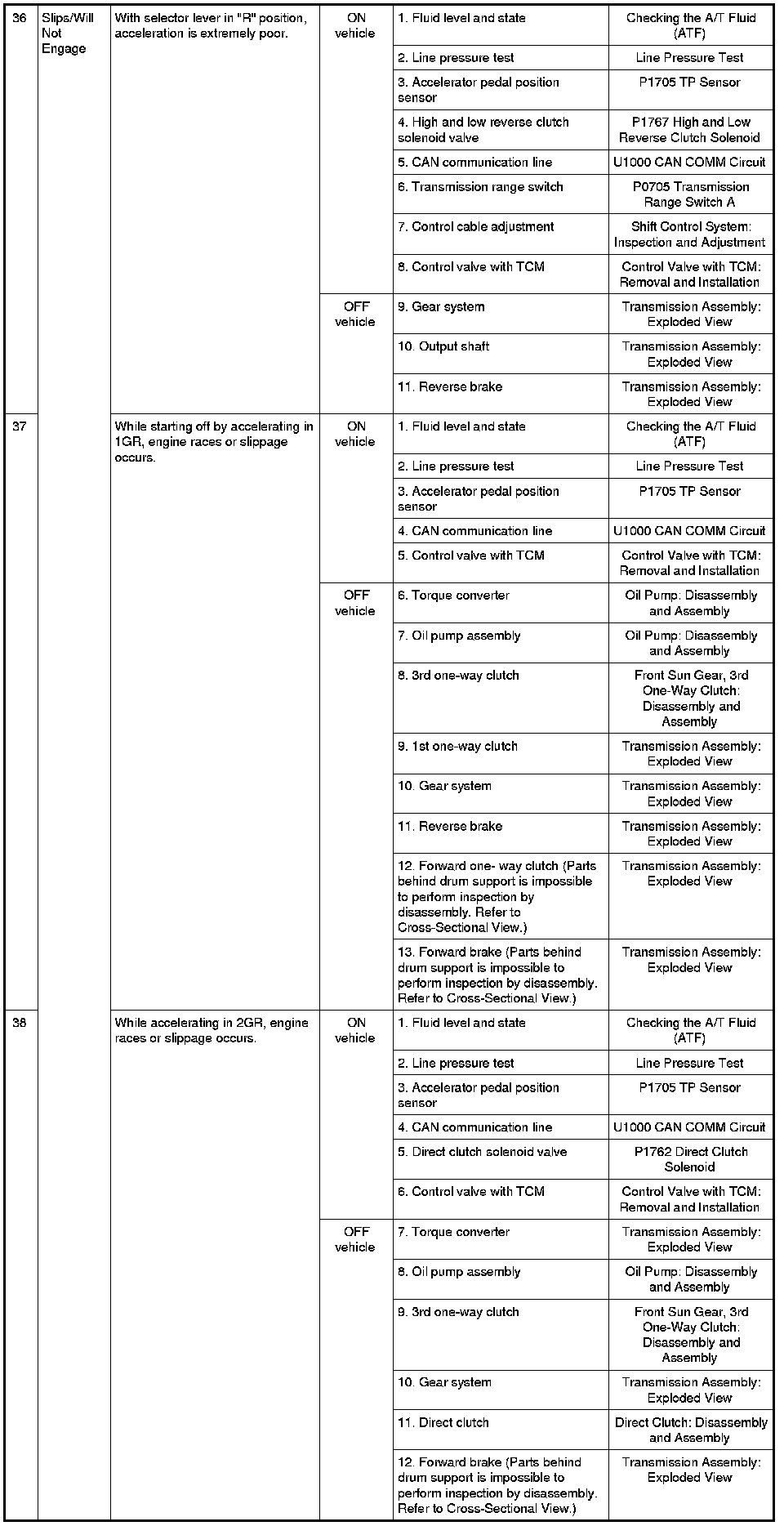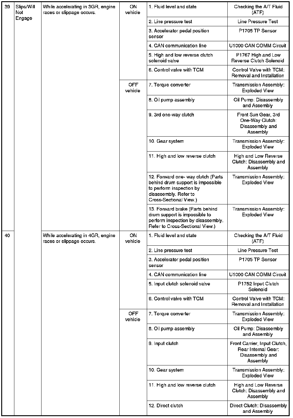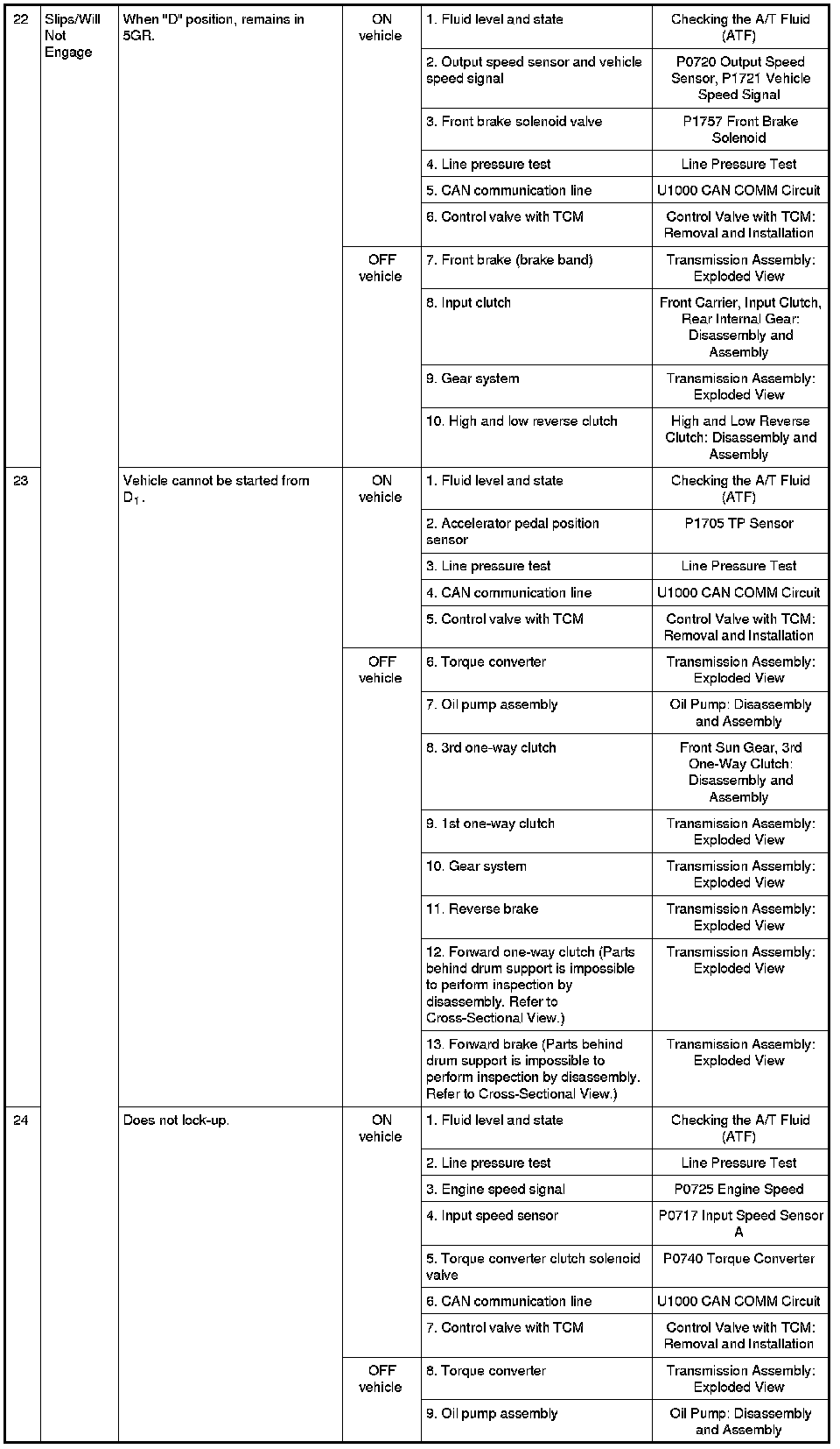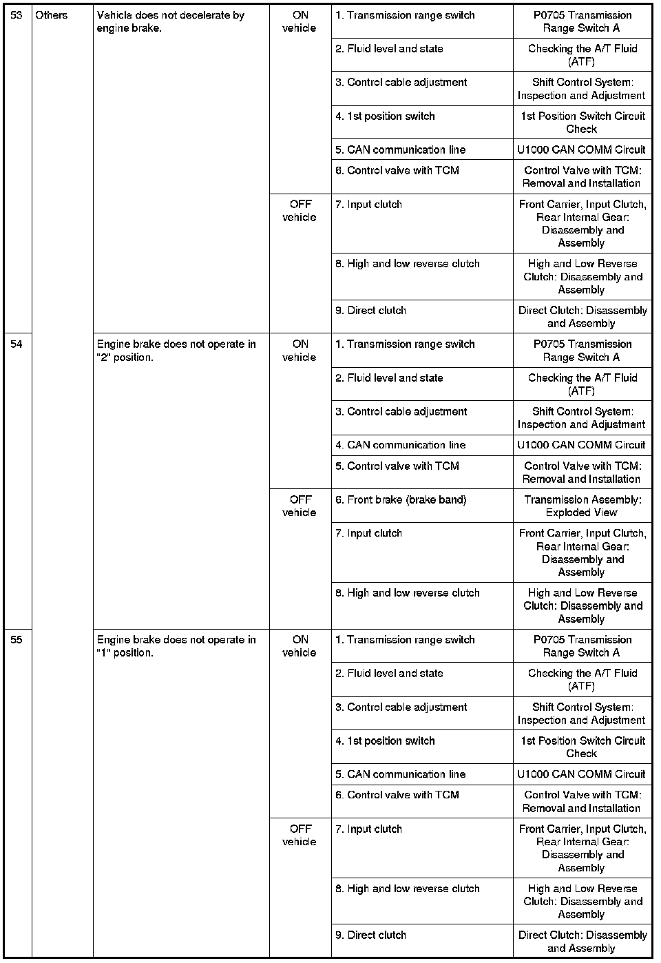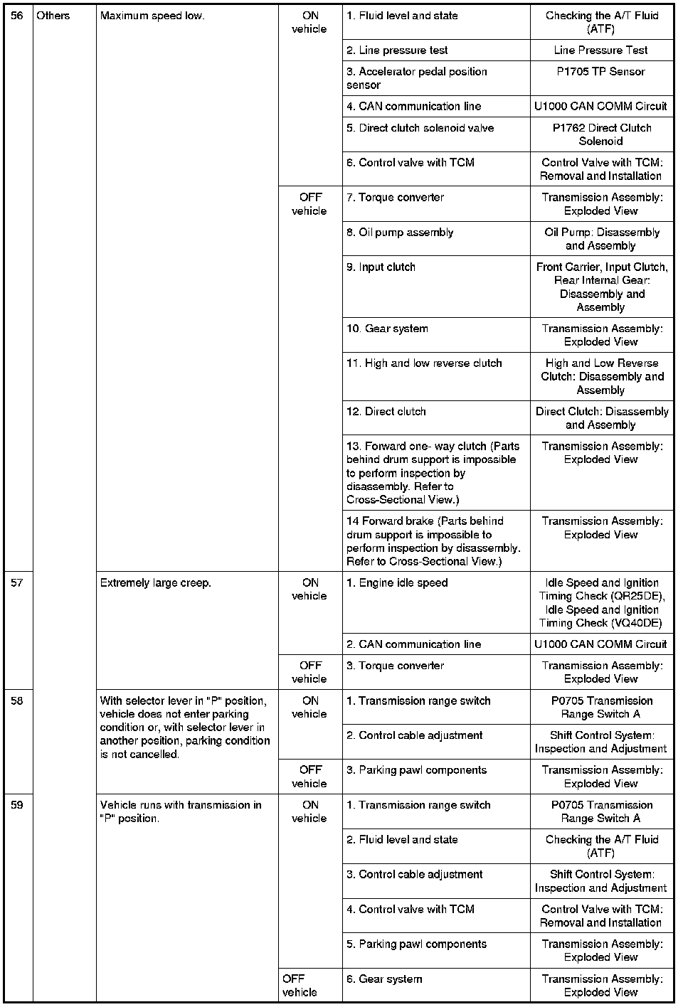 - Overhaul and inspect inside the A/T only if A/T fluid condition is NG. Refer to