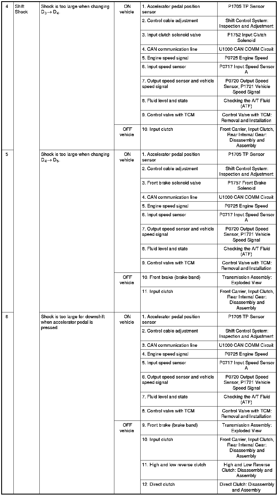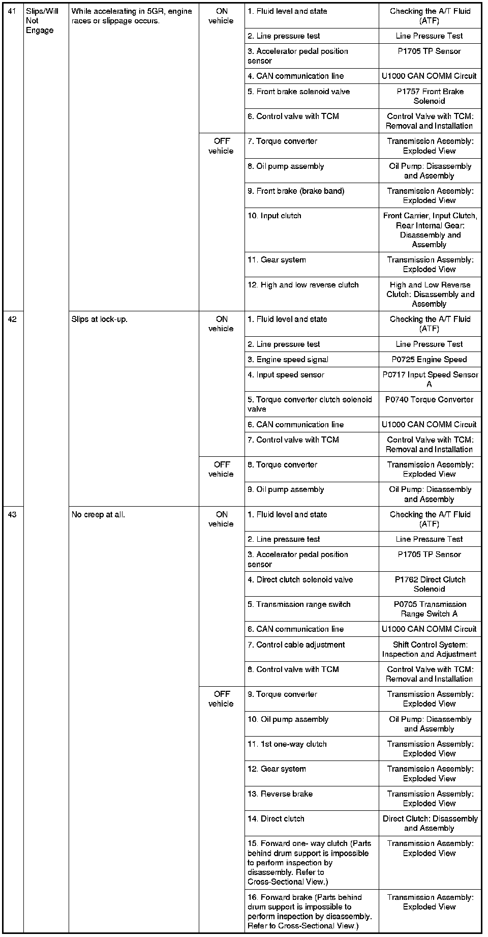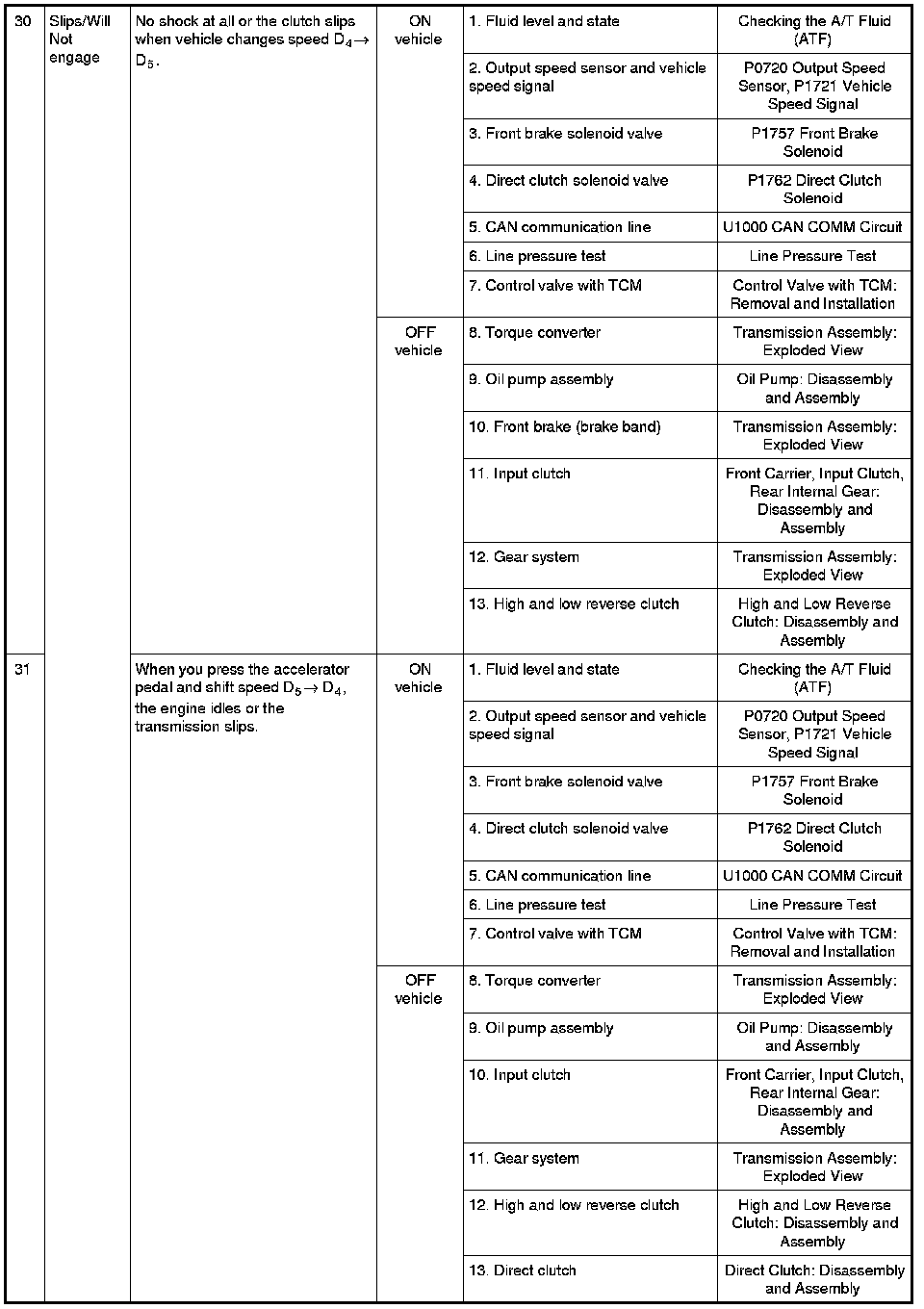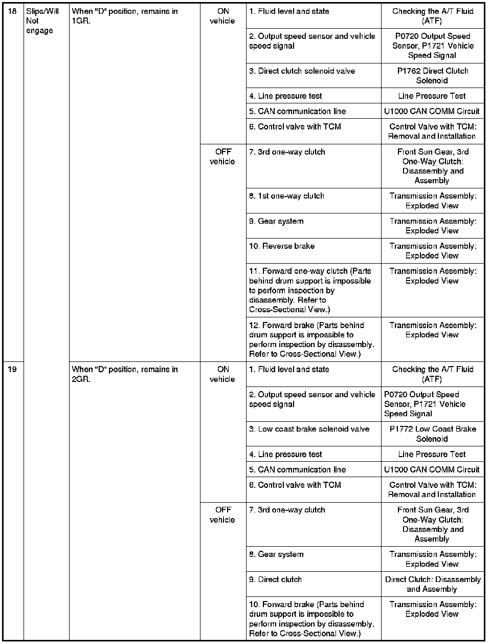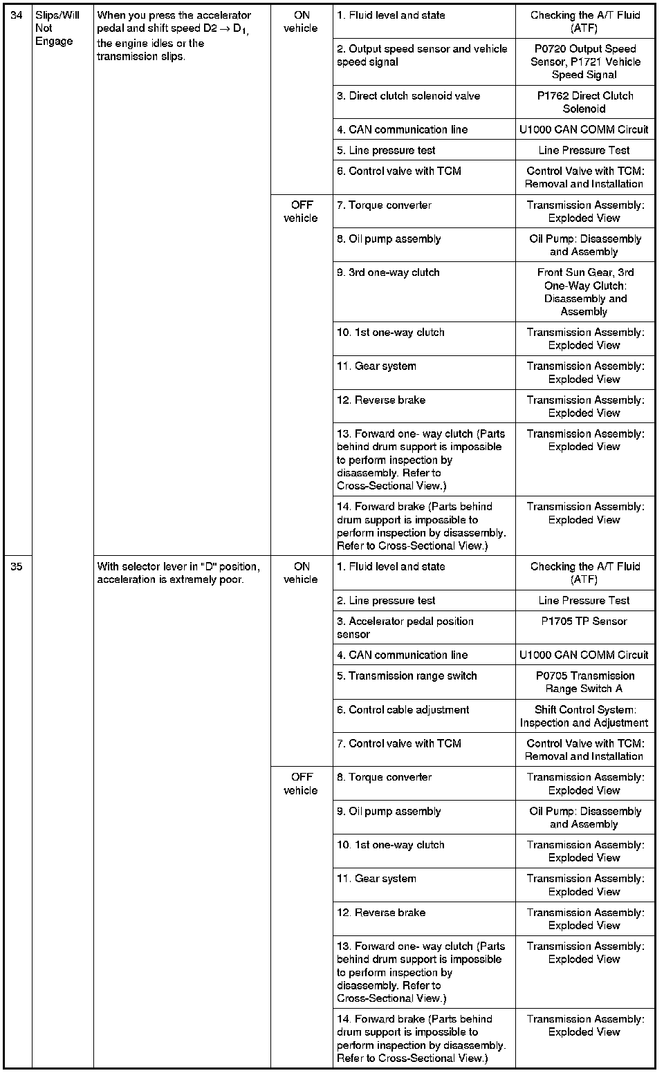 - Overhaul and inspect inside the A/T only if A/T fluid condition is NG. Refer to