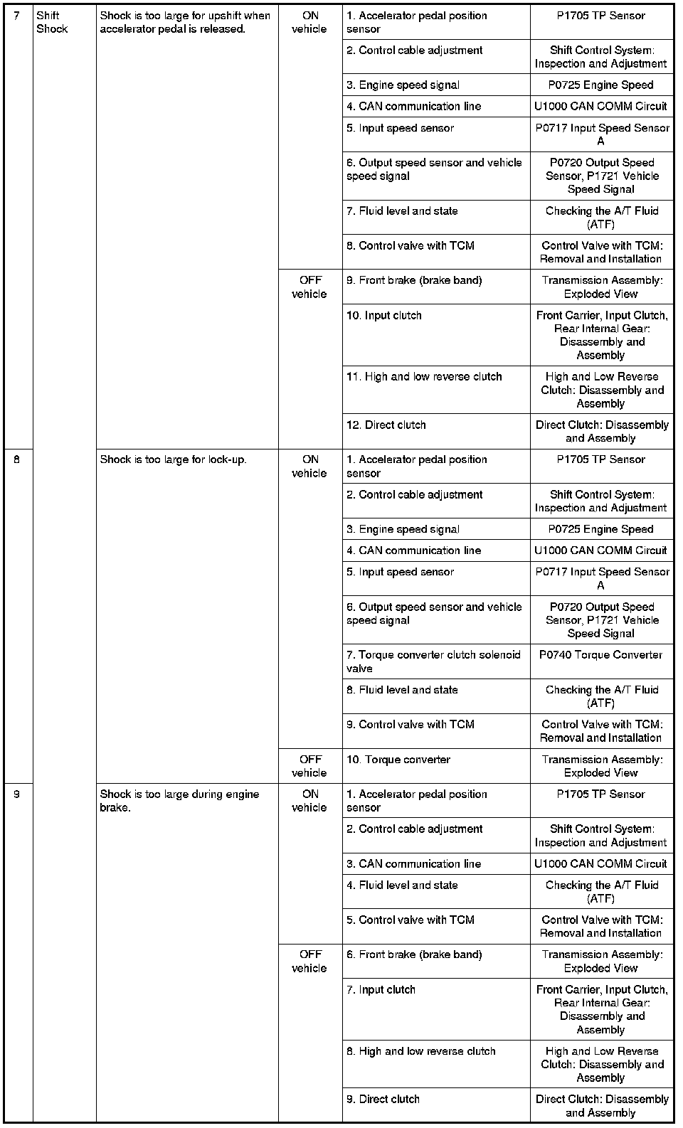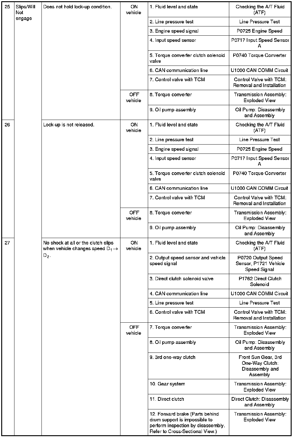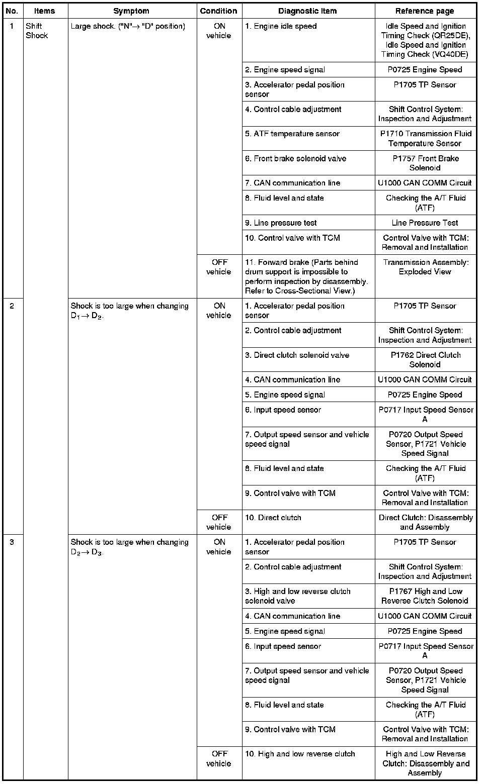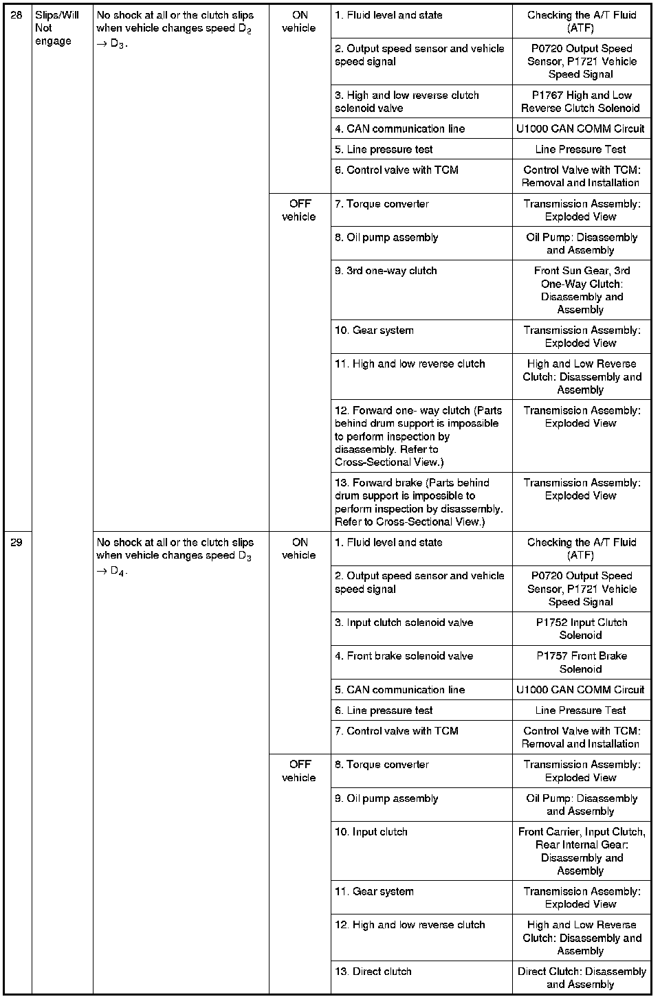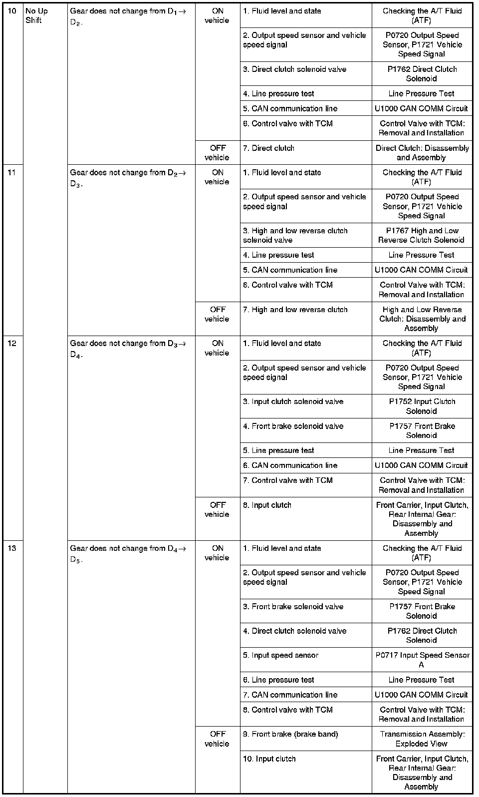 - Overhaul and inspect inside the A/T only if A/T fluid condition is NG. Refer to
