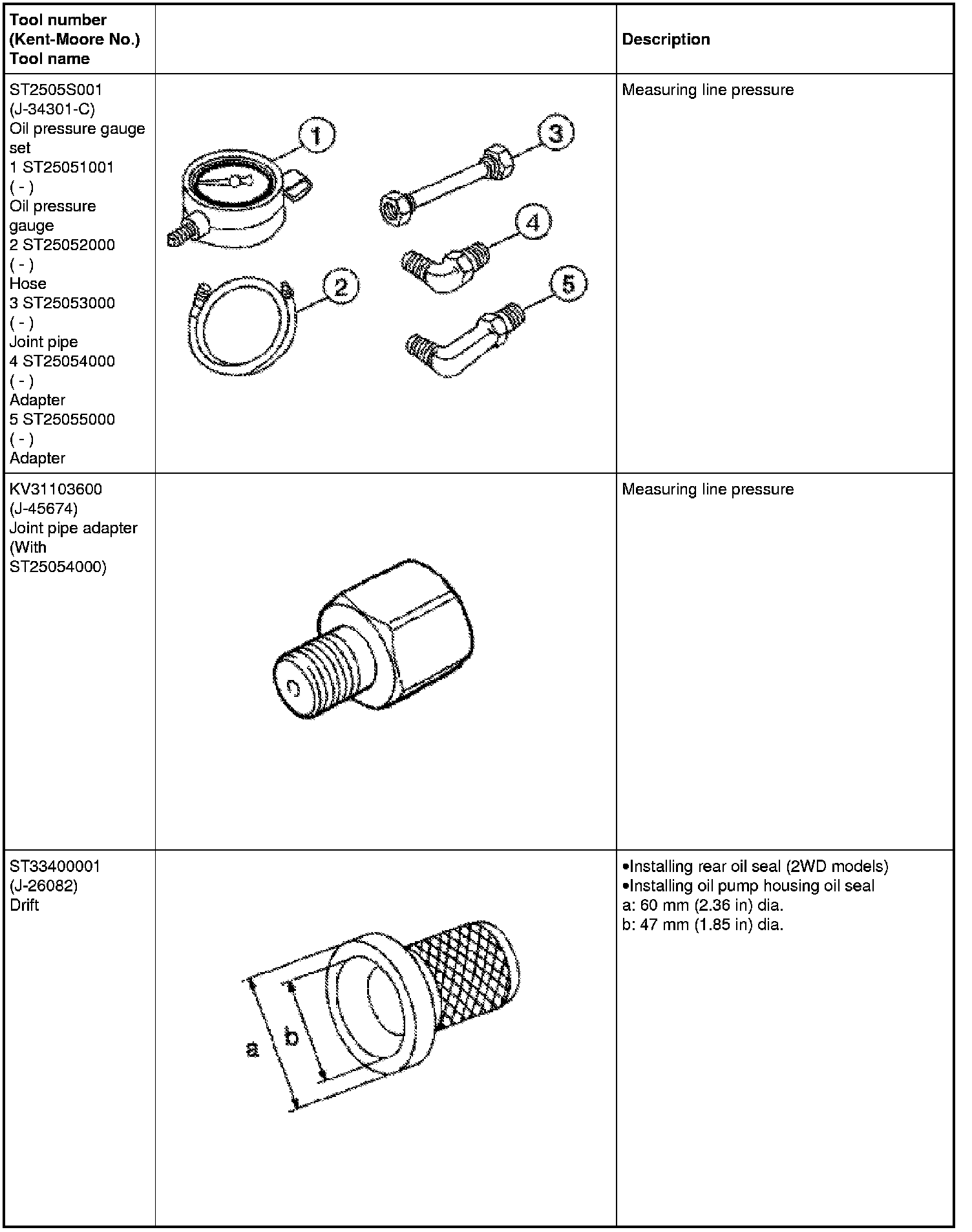 The actual shapes of Kent-Moore tools may differ from those of special service tools illustrated here.