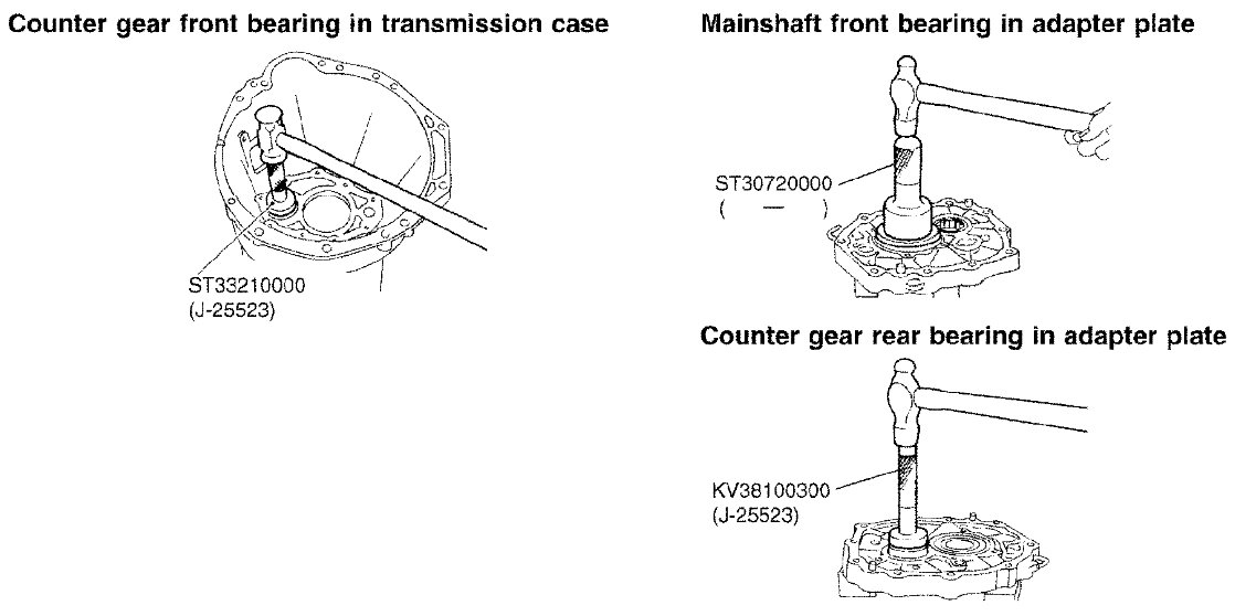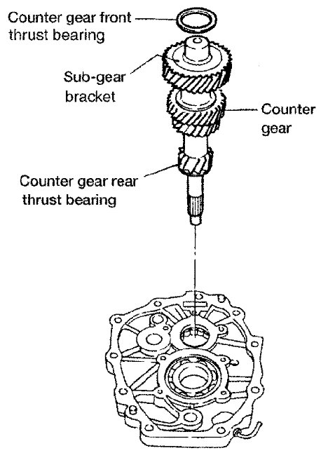 7) Select proper counter gear front bearing shim when replacing transmission case, counter gear, counter gear rear thrust bearing or sub-gear bracket.