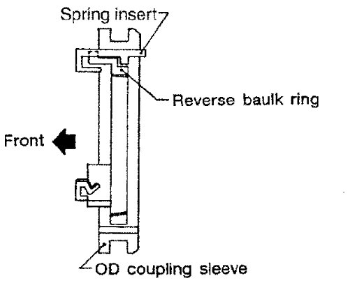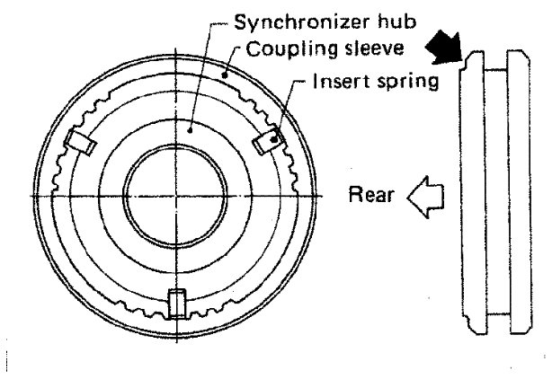 g) Install spring inserts and reverse baulk ring on OD coupling sleeve. Then install them and OD baulk ring on OD counter gear.