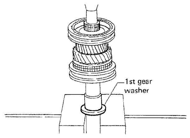 g) Press on 1st gear bushing using 1st gear washer.