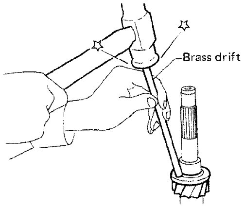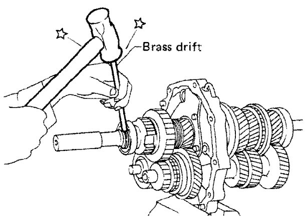 b) Install counter gear rear thrust bearing using a brass drift.