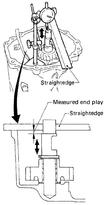 d) Move reverse idler shaft up and down and measure end play.