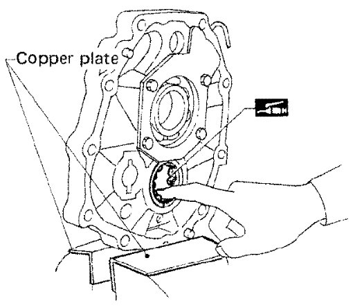 a) Mount adapter plate on vise and apply multi-purpose grease to counter gear rear bearing.