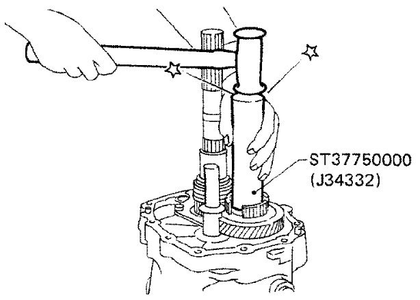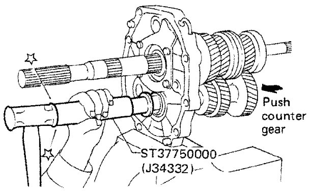 Be careful not to damage counter gear rear thrust bearing.