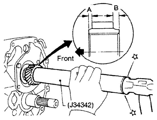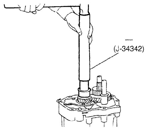 b) Partially install mainshaft on mainshaft front bearing using suitable tool.
