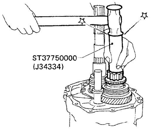 a) Install new OD gear bushing using Tool while pushing on the front of counter gear.
