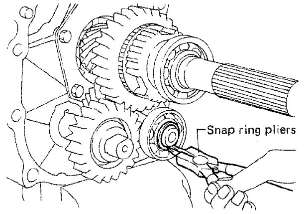 1) Install mainshaft front bearing snap ring to mainshaft front bearing.