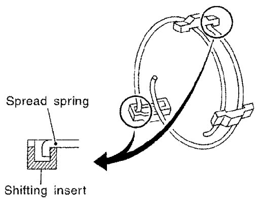 b) Install shifting inserts and spread springs to 5th-6th synchronizer hub.