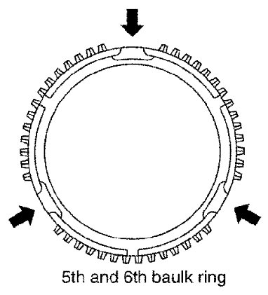 5th and 6th baulk rings have three spaces that four gear teeth are missing as shown.