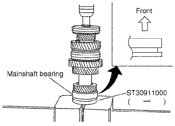 a) Install main pilot bearing, pilot bearing spacer and 5th baulk ring to main drive gear.