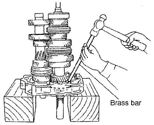 b) Install main drive gear assembly, mainshaft assembly and counter gear assembly combined in one unit to adapter plate using brass bar.
