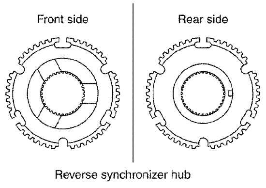- Replace reuse reverse coupling sleeve and reverse synchronizer hub as a set.