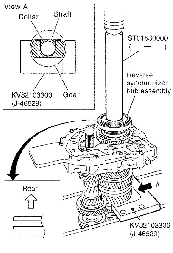 a) Install reverse coupling sleeve to reverse synchronizer hub.