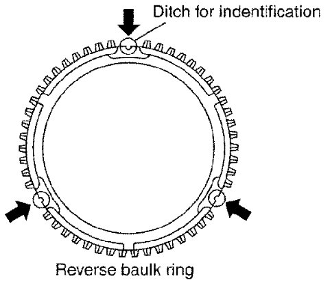 Reverse baulk ring has three spaces that two gear teeth are missing, and each space has small ditch for identification as shown.